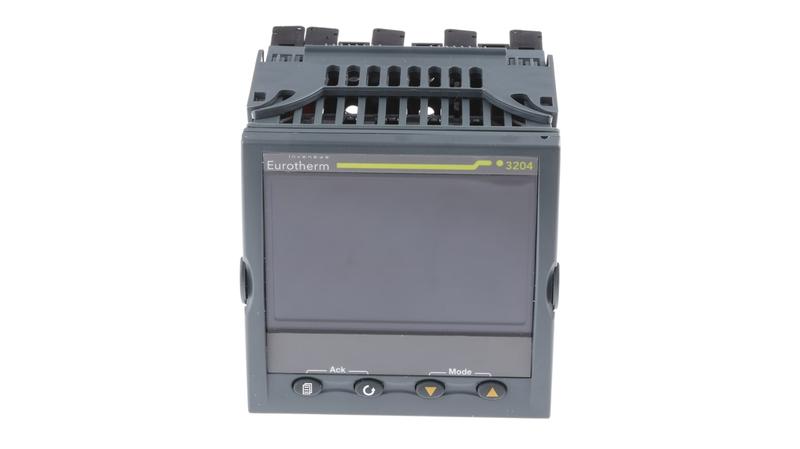 The Eurotherm 3204 temperature controller has a supply voltage ranging from 85VAC to 264VAC. This standard controller has a width of 96mm and a height of 96mm and depth of 90mm (1/4 DIN) device. It has up to 4 outputs where the first output is Logic I/O, second and fourth outputs are dedicated to relaying and the third output is the current ranging from 0mA to 20mA. It has quick and easy commissioning. It has clear information about the process of scrolling and custom messages. The custom alarm messages facilitate easy understanding. There is a provision for recipe selection from the operator interface. It has an internal timer and setpoint programming. There is an integral ammeter for instant alerts regarding heater faults. Additionally, it has a remote setpoint solution for multi-zone applications._x000D_