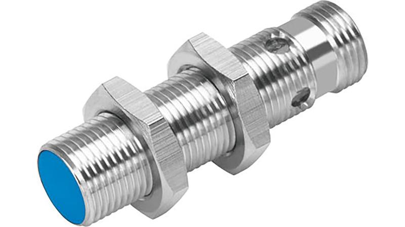 Need to detect metallic objects at short range? This barrel-bodied inductive proximity sensor from Festo will do the job. It's unaffected by dirt, oil or surface finish and can be used in areas where high vibration and shock can be expected. The PNP (positive-negative-positive) output connects to the positive when the sensor detects metal within a range of up to 4 mm. It can operate at temperatures from -25˚C to +70˚C, making it suitable for a wide range of industrial environments, and it's rated IP (ingress protection) 65, so it's dust-tight and protected from jets of water._x000D_