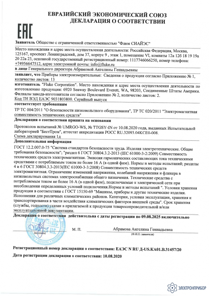 | Внешний датчик (Компания Fluke поддерживает использование внешних датчиков, но не предоставляет их) | |