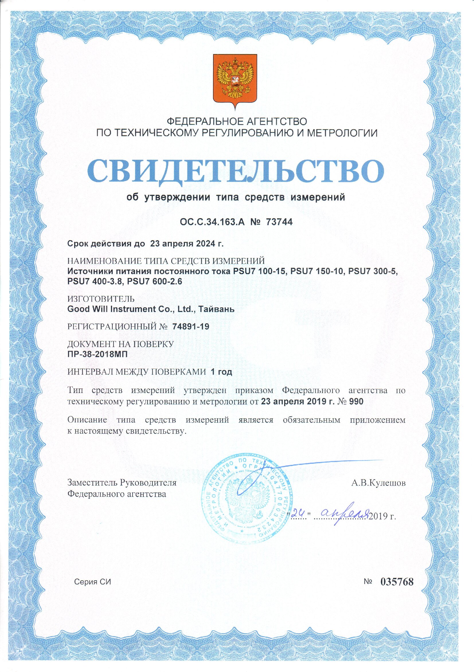 Программируемый импульсный источник питания постоянного тока PSU7 400-3.8, встраиваемый в стойку 19" (формат 1U), имеет номинальную выходную мощность 1520 Вт, диапазон регулировки напряжения и тока (Uвых до 400 В и Iвых до 3,8 А), режимы стабилизации тока и напряжения, возможность программирования.