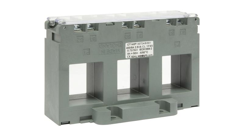 Miniature 3 Phase Current Transformers- CT140 Series_x000D_ A range of miniature 3 phase current transformers suitable for primary ranges from 250A to 630A with 5A secondary. The CT140 series are supplied with terminal covers and a choice of fixings._x000D_ • Foot mounting_x000D_ • For installation onto cables or 31 mm max. busbars_x000D_ • 140 mm width allows direct installation on top of moulded case circuit breakers_x000D_ • Continuous current- 1.2 x rated current_x000D_ • Insulation level 3 kV for 1 min_x000D_ • Conforms to IEC185, BS 7626, BSEN 60044-1and IEC 60044-1_x000D_ Current Transformers