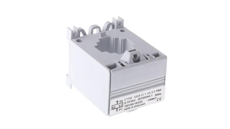Multi Mounting Current Transformer - 14mm Aperture_x000D_ Three built-in fixing methods: Base and DIN rail mounting_x000D_ Case moulded in impact polyester with built-in hinged terminal cover_x000D_ Cables up to 14mm outside diameter, or a busbar 14mm wide_x000D_ Accuracy Class 1 (60 & 80A) or Class 3 (25 & 40A)_x000D_ Power consumption 2.5VA, 50/60Hz_x000D_ For use with 5A moving iron meters or cam-operated selector switches_x000D_ Secondary winding epoxy resin insulated_x000D_ BS7627/IEC185_x000D_ Current Transformers
