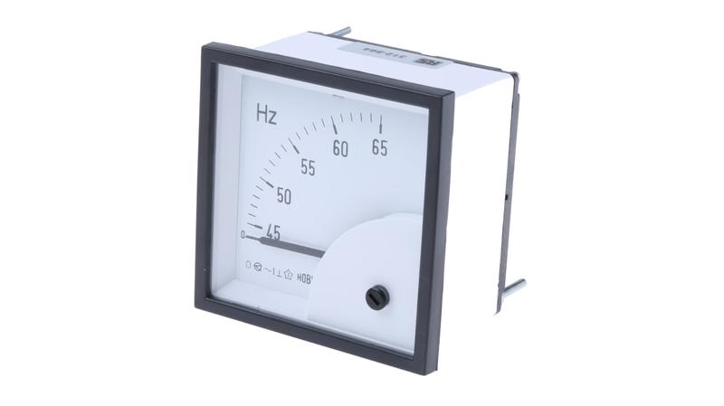 DIN Standard Frequency Meter_x000D_ 45 to 65Hz, 240V, 90° scale arc, accuracy class 1_x000D_ Meters have integral scales_x000D_ Manufactured to BS89/IEC51_x000D_ Flame retardant case to UL94V0_x000D_ Supplied with_x000D_ mounting brackets.