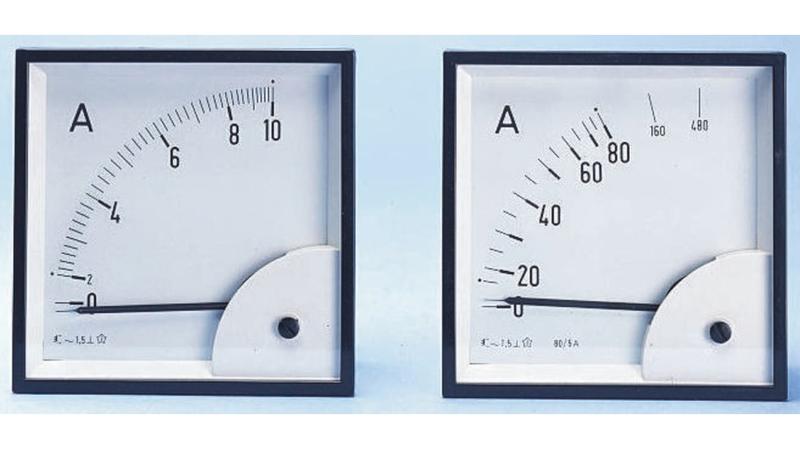 Panel meter scales suitable for DIN-standard 72 mm and 96 mm CT operated moving iron ammeters._x000D_