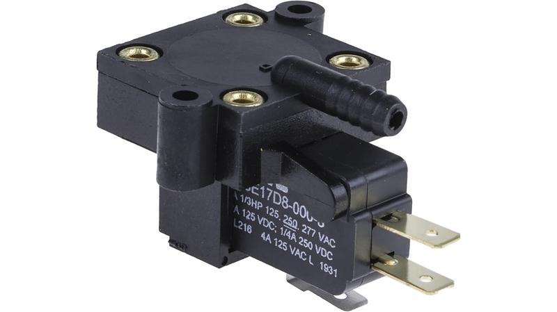 Series 2: Adjustable snap action pressure switches, single port on pressure side, 3 port options: 5.0mm radial, 4.0mm perpendicular or 1/8 NPT brass connection - for NPT adaptors see 536-2577_x000D_
