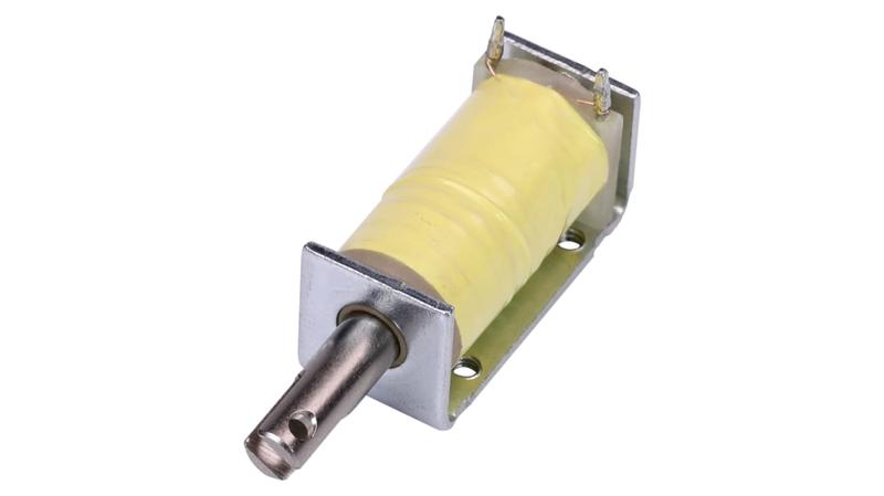 Johnson Electrics linear open frame solenoid technology consists of an open iron frame, an overmolded or taped coil, and a movable plunger in the center of the coil. This platform is available in AC and DC versions and in two frame styles, the C Frame style, in which the coil is enclosed on side, and the Box Frame style in which the coil in enclosed on two sides. The Box Frame style provides slightly higher force output and higher resistance to environmental conditions. Open Frame Solenoid technology offers an economical design for high volume applications, continuous or intermittent duty, and on/off operation common in applications such as vending machines and automated door locks. This technology offers life up to 5 million cycles and a variety of size, force and stroke options._x000D_