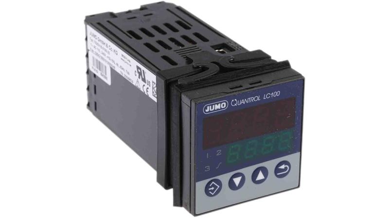 The Jumo QUANTROL LC100 series temperature controller has supply voltage ranging from 110VAC to 240VAC. This controller has a width of 48mm and a height of 48mm device. It has one analogue output and one relay output (N/O contact). This controller is a compact, easy to use and self-optimising device. It is used for 2-state and 3-state control applications, as well as for the control of regulating valves or SCR power controllers via a continuous controller output. The universal analogue input is for RTD temperature probes, thermocouples, or current/voltage signals. This is easily programmable by the user._x000D_