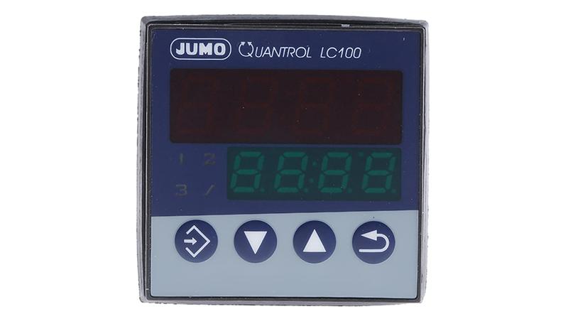 The Jumo QUANTROL LC100 series temperature controller has supply voltage ranging from 20VAC/DC to 30VAC/DC. This controller has a width of 48mm and a height of 48mm device. It has one analogue output and one relay output (N/O contact). This controller is a compact, easy to use and self-optimising device. It is used for 2-state and 3-state control applications, as well as for the control of regulating valves or SCR power controllers via a continuous controller output. The universal analogue input is for RTD temperature probes, thermocouples, or current/voltage signals. This is easily programmable by the user._x000D_