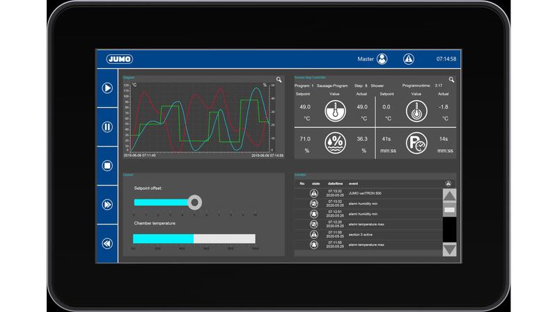 The JUMO the web panels are simply connected to the JUMO variTRON automation system via Ethernet. They support CODESYS Remote TargetVisu or WebVisu. Visualizations created with CODESYS can be displayed on the web panels and used to operate the system. The capacitive touchscreens are available in different sizes and resolutions._x000D_