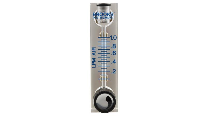 The Key Instruments FR2000 series variable area flow meter measures the gas flow rate of 0.1L/min to 1L/min. This is a standard, precision-machined, acrylic flow meter for liquids or gases. It has direct-reading air or water scales and is available in either English or metric scales. This is a durable and affordable product that provides highly repeatable results. It can be configured with a control valve on the inlet. The fittings and the valve are specified in brass and the O-rings are provided with Buna-N. These precision-machined, 1-piece, acrylic-body blocks can handle demanding projects and mounting panels along with high durability. It is used for many non-corrosive, low-pressure air, water and gas flow applications._x000D_