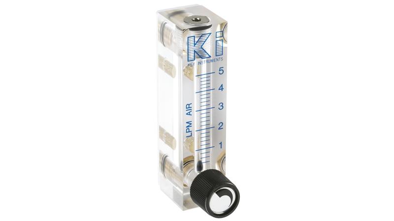 The Key Instruments FR2000 series variable area flow meter measures the gas flow rate of 0.4L/min to 5L/min. This is a standard, precision-machined, acrylic flow meter for liquids or gases. It has direct-reading air or water scales and is available in either English or metric scales. This is a durable and affordable product that provides highly repeatable results. It can be configured with a control valve on the inlet. The fittings and the valve are specified in brass and the O-rings are provided with Buna-N. These precision-machined, 1-piece, acrylic-body blocks can handle demanding projects and mounting panels along with high durability. It is used for many non-corrosive, low-pressure air, water and gas flow applications._x000D_