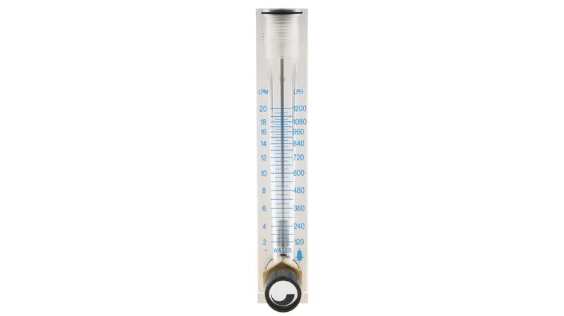 The Key Instruments Flo-Rite series variable area flowmeter measures the liquid flow rate of 1.5L/min to 20L/min. It is a standard, precision-machined, acrylic, flowmeter for liquids or gases. It also has direct reading air and water scales. The Flo-Rite flowmeters can be configured with a control valve on the inlet or no valve at all. The O-rings are provided as Buna-N._x000D_