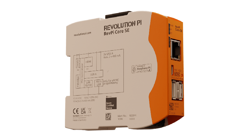 The Kunbus Revolution Pi Core SE 16 GB version has a quad-core Arm Cortex-A72 processor with clock rate of 1.5 GHz. It has 1 GB LPDDR4 RAM. It has 1 x 4-pole screw-type terminal connector for power supply. Maximum power consumption is 10 W._x000D_