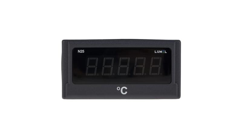 The Lumel N25 series 5-digit LED digital panel multi-function meter. It is designed to measure temperature. Its service temperature ranges between -10°C and 55°C. Possible configuration of parameters is through the PD14 programmer and the free delivered LPConfig program._x000D_