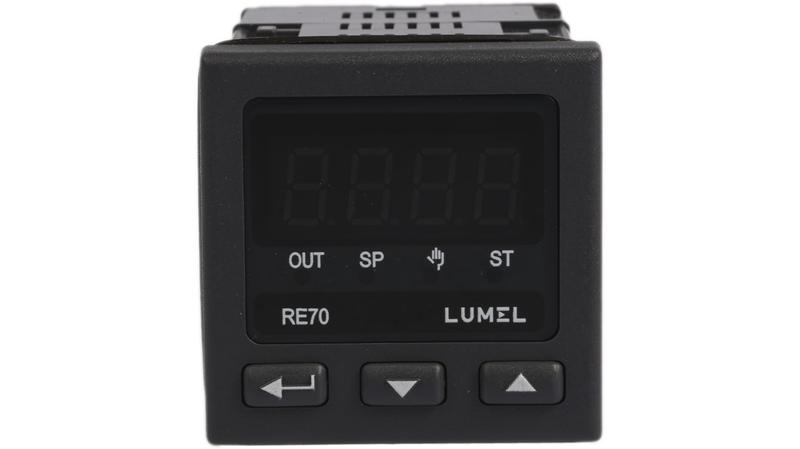 Lumels RE70 00E0 model PID Temperature Controller is a digital controller specifically designed for implementation in systems used to control temperature parameters in furnaces, dryers, injection moulding machines whilst still suitable for other less specific applications._x000D_