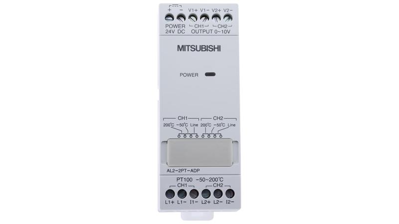 - 2 Pt100 inputs (-50°C to +200°C, 3-core), output 0 to 10V with module AL2-2PT-ADP_x000D_