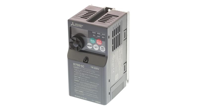 The FR-D700 variable frequency drive (VFD) is typically used in standard applications due to it being user friendly and useful._x000D_