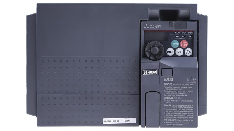 The Mitsubishi FR-E740 Inverter Drive is a true investment for the future, sitting within a powerful and compact range this VFD has a power rating of 5.5 kW and a supply voltage of 400 V ac.