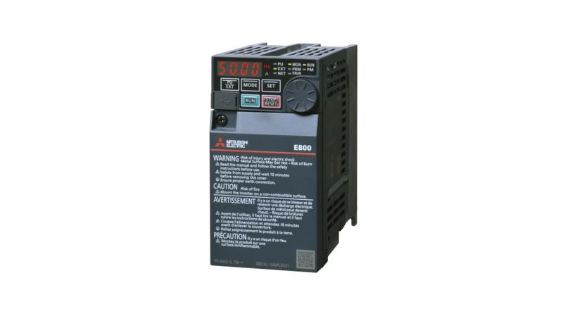 The Mitsubishi compact inverter is a FR-E800 RS485 type inverter and has 3 ampere operating current rating._x000D_