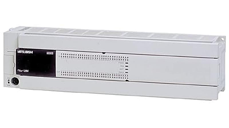 The Mitsubishi FX3U series logic module has 64 inputs and 64 relay outputs with a contact rating of 8A. This DIN rail mount logic module has a screw termination method. It has a large memory for applications that require a large space. This logic module has a supply voltage that ranges between 100VAC and 240VAC._x000D_