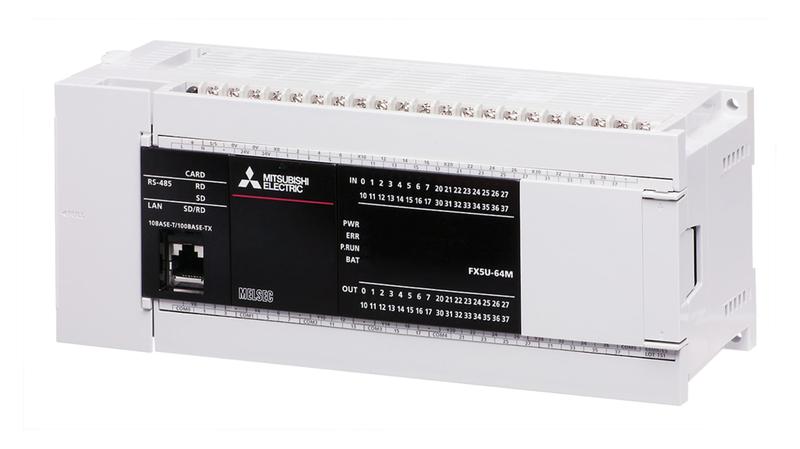 FX5U - CPU Modules_x000D_ The first model in the iQ-F series is the FX5U, offering high performance in a compact, cost effective package._x000D_ The FX5U continues the FX tradition of total flexibility by offering a huge range of new and existing add-on options which further enhance the built-in functions of Ethernet, analogue I/O, data logging, position control, security, communications and networking functions incorporated as standard._x000D_ The FX5U will provide users with the ability to specify more powerful systems but with fewer overall components, saving time and cost._x000D_ FX5U CPU base units with very fast processing time_x000D_ Versions with up to 256 inputs and outputs_x000D_ Expanded input/output area for networks and complex applications_x000D_ Can be upgraded by combining with expansion modules_x000D_ Built-in SD card slot_x000D_ Run/Stop/Reset switch_x000D_ Built-in Ethernet port, RS485_x000D_ Displays the input and output states via LEDs_x000D_ Integrated real-time clock_x000D_ Programming software GX Works3_x000D_ Mitsubishi FX5U