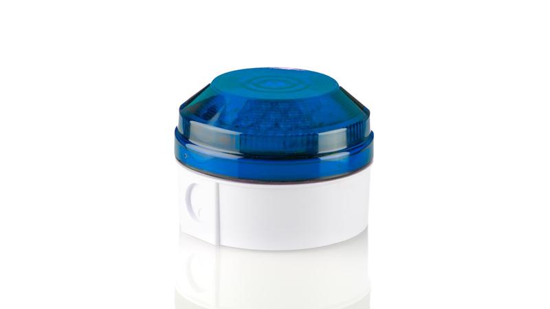 This blue LED (light-emitting diode) beacon from Moflash provides you with a clear signal for your security and safety applications. The LED bulbs turn on and off quickly via the circuit board to create a fast, urgent flash. Its deep base ensures the beacon is tightly secured in place, making it practical for high-vibration applications such as vehicles or machine automation. Thanks to the O-ring that attaches around the top of the base, the unit is protected against dust and moisture._x000D_