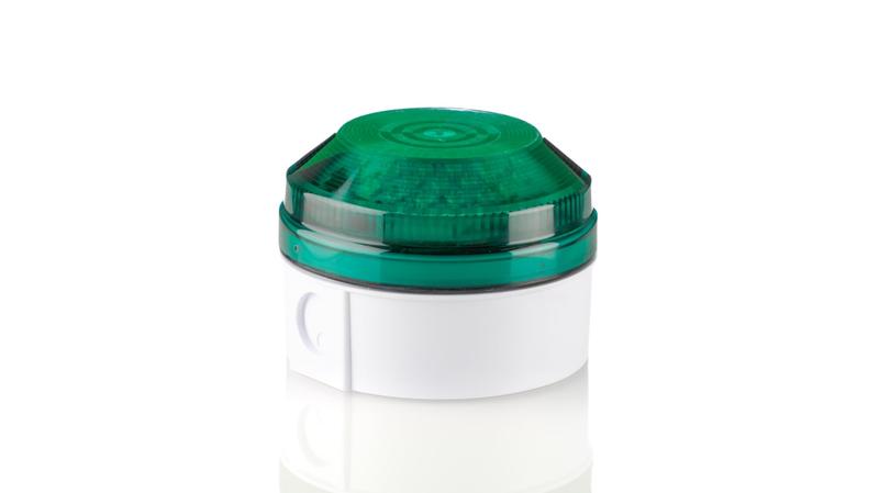 Alert personnel to a change in process with this green LED (light-emitting diode) beacon from Moflash. The beacon mounts to a wall or flat surface for ease of installation and has a low current consumption of 35mA for long-lasting, low-maintenance use. The beacon's full beam spreads 120° along the vertical axis for an alert that's highly visible throughout the nearby area. Its polycarbonate (PC) lens is UV (ultraviolet) stable, so it can withstand exposure to direct sunlight without warping, degrading or changing colour._x000D_