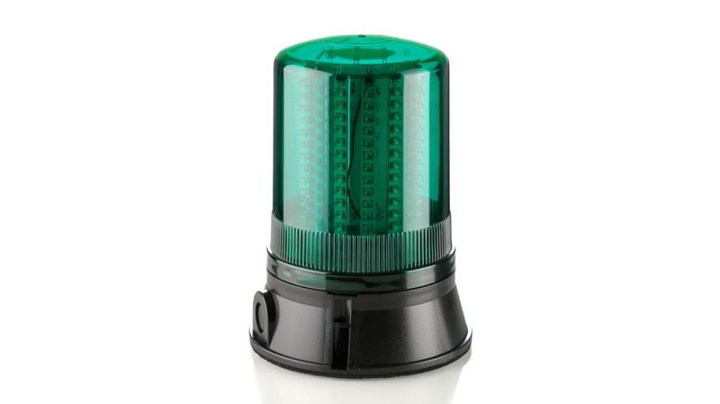 Provide your workplace with a long-lasting signal that requires little maintenance with this Moflash LED (light-emitting diode) beacon. Its 144 miniature LED bulbs are assembled in twelve columns, positioned in a circle for highly visible, omnidirectional signalling. The green-colored lens provides a clear visual indicator of the status of machinery in industrial processes. Thanks to the threaded interior and outer grooves, the lens twists securely on and off for easy maintenance and inspection. The ABS (acrylonitrile butadiene styrene) plastic base is highly impact-resistant and flame-retardant, making it safe to use in demanding environments._x000D_