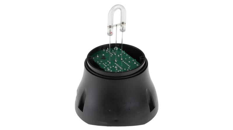 This xenon beacon from Moflash is a bright flashing light used for industrial signalling applications. The electrical circuit travels up the discharge capacitor into the curved tube containing the xenon gas. The electricity then ignites the gas, causing a bright flash with an energy of 2J (joules). Light flashes from the transparent tube in all directions, creating a 360° beam along the vertical axis. This makes it easy to see over a wide area. Pair this beacon with a coloured lens of your choice to best suit your signalling needs._x000D_