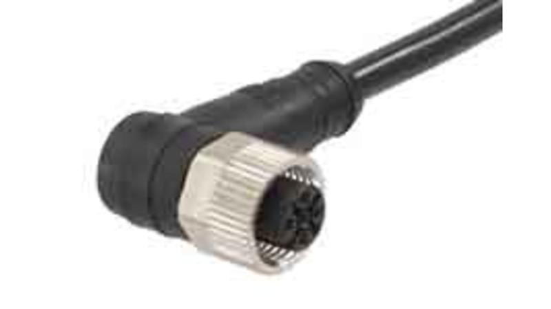 Micro-Change (M12) Single-Ended Cordset with Knurled Hexnut, 4 Poles, Female (90°) to Pigtail, 22 AWG, Shielded WSOR Cable, 5.0m (16.40') Length