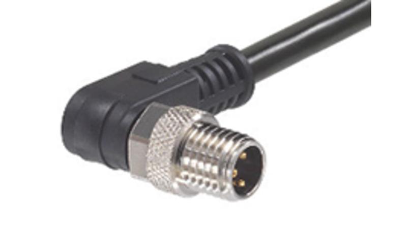 Nano-Change (M8) Single-Ended Cordset with Knurled Hexnut, 3 Poles, Male (90°) to Pigtail, 24 AWG, WSOR Cable, 2.0m (6.56') Length