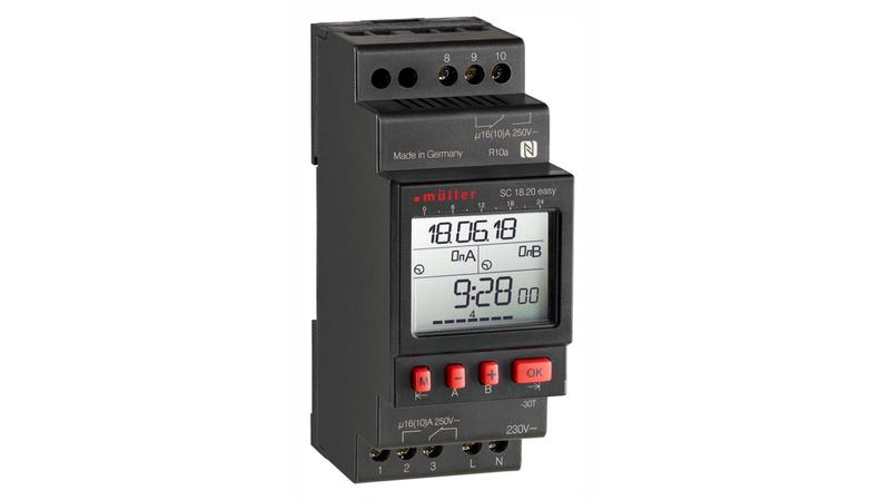 SC 18.14/18.24 easy_x000D_ Features and Benefits_x000D_ Easy handling and quick and intuitive programming_x000D_ Large, clear illuminated display with one line text_x000D_ NFC Programming via smartphone (free Android App)_x000D_ DIN Rail mounting_x000D_ 1 channel (137-1053) or 2 channel (137-1054)_x000D_ Daily and weekly program_x000D_ Astro program_x000D_ Economical night program_x000D_ Extra switching times_x000D_ 56 Memory locations_x000D_ 10 years battery-reserve_x000D_ Exchangeable battery (CR 2032)_x000D_ Minimum interval 1 min._x000D_ Switching capacity 16 A per channel_x000D_ Permanent by date and time/holiday function_x000D_ Manual permanent mode_x000D_ Manual override_x000D_ Automatic sorting of switching times on readout_x000D_ Fully automatic daylight saving time_x000D_ Elapsed time and pulse counter_x000D_ Security PIN code_x000D_ Remotely Programmable