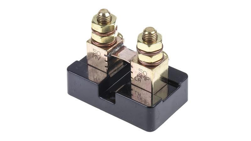 simply connect the load circuit to the shunts threaded studs and the shunts mV Kelvin-outputs to the digital ammeters input terminals. It features a rugged phenolic base that provides 750V isolation to the shunts brass terminals, allowing direct attachment to metal surfaces._x000D_