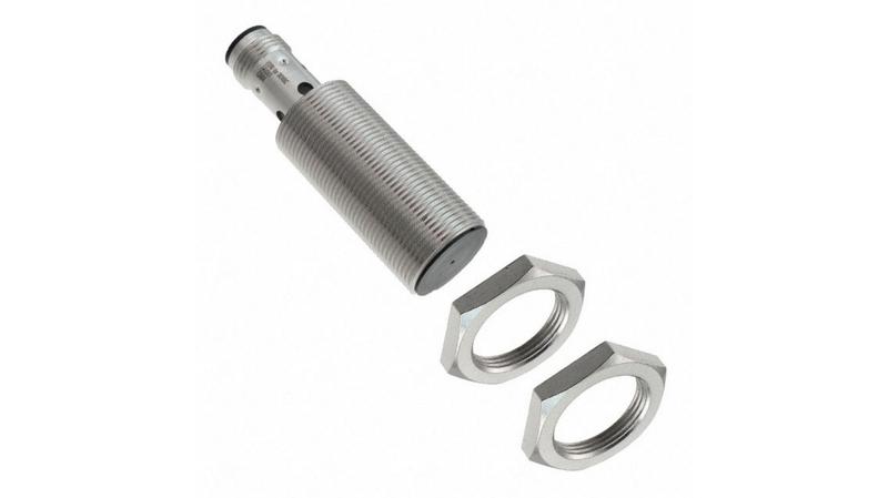 The Omron 5mm 3-wire inductive proximity sensor has nickel-brass body with M12 plug-in._x000D_