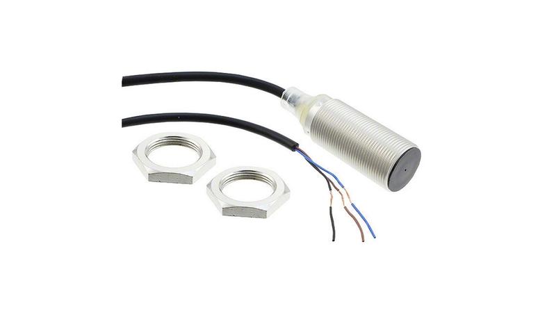 The Omron 8mm 3-wire inductive proximity sensor has nickel-brass body with size M18._x000D_