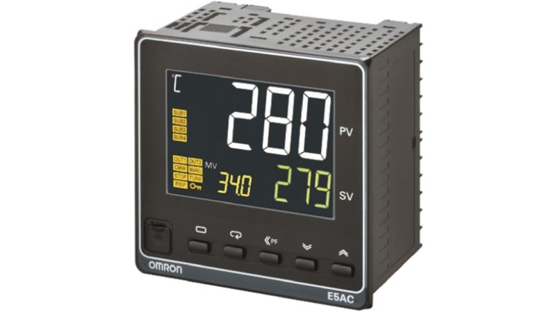 E5AC Digital Temperature Controllers (96 x 96mm)_x000D_ The Temperature Controllers Series E5AC set new global standards in the crucial areas of precision, user friendliness and control performance._x000D_ This series will save you time and effort in set-up and operation, while enabling faster and more accurate monitoring/control of your process._x000D_ The high-visibility display of the new series is also extremely easy to read and virtually eliminates any possibility for human error._x000D_ High-contrast, white LCD display visible from large distances and from any angle_x000D_ Easy to set up and operate intuitively via CX-Thermo without power supply_x000D_ High-speed sampling at 50 ms_x000D_ Functions for diagnosis for secure operations_x000D_ Useful timer and logic operation functions eliminating the need of a PLC_x000D_ Tool ports are provided both on the top panel and the front panel_x000D_ Short body with depth of only 60 mm_x000D_ Omron - E5GC, E5CC, E5EC, E5AC, E5DC, E5CN & E5CB Ranges