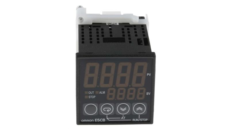 The Omron E5CB series temperature controller has a voltage output (for driving SSR) of 12VDC, 21mA and single alarm relay output of 250VAC, 1A (resistive load). The sensor type is a thermocouple (K, J, T, R, or S). This controller has a width of 48mm and a height of 48mm 1/16DIN. It is easy to read with one of the largest character display. It has an operating supply of 100VAC to 240VAC._x000D_