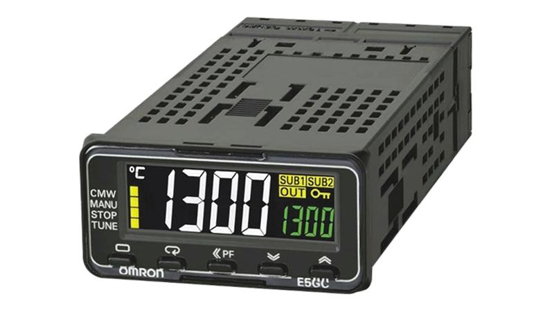 The Omron E5GC series temperature controller has a supply voltage rating ranging from 100VAC to 240VAC. This high precision controller has a width of 48mm and a height of 24mm. It has a single relay output and dual auxiliary outputs. The easy-to-read high contrast display with white characters and 10.5mm large characters is visible from large distances and at any angle._x000D_
