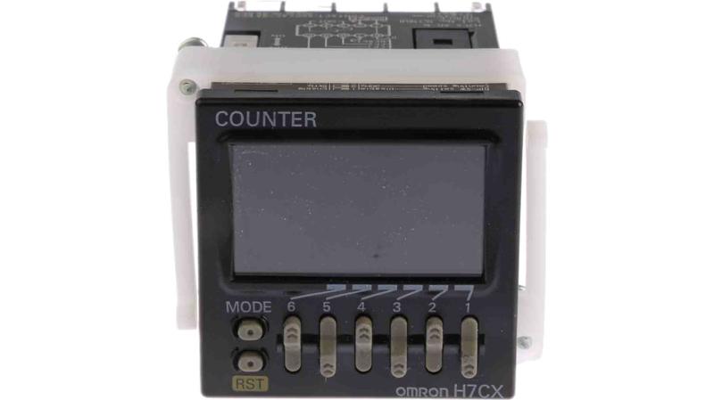 The Omron H7CX series digital counter is a 6-digit LCD display, panel mount, single preset multifunction device. This counter has voltage input and SPDT contact output device. It has voltage rating ranges between 12VDC and 24VDC. The 3-colour display value red, green or orange (except H7CX-A11 models) increases character height and display segments. It supports up, down, command, individual, quadrature operating modes. This counter has a maximum count frequency of 10KHz._x000D_
