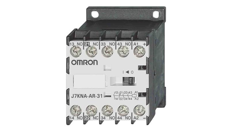 The Omron J7KNA-AR series is a mini contactor relays DC solenoid operated has 10A thermal rated current .It consist 4-pole with screw terminals._x000D_