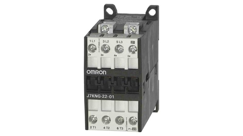 The Omron J7KNG series contactor which is DC-operated has coil voltage 24 V dc and has current rating of 22 A. It has electrical connection of screw fixing and snap fitting on a DIN-rail. It has dimension of H89 x W45 x D125._x000D_