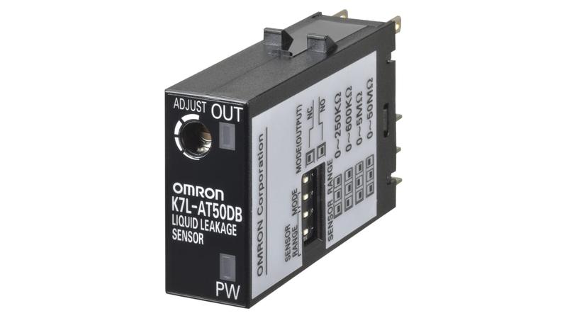 Omron Liquid Leakage Sensor K7L Series_x000D_ The K7L-AT50 liquid leakage sensor amplifier by Omron can detect a wide variety of liquids ranging from water to chemicals with low conductivity. It internally oscillates AC signals provided to the Sensing Band, protecting it from electric corrosion and ensuring safe operation._x000D_ There are four sensing ranges available, ensuring detection is suited to the application. The K7L also incorporates a noise canceller circuit that uses a 3-conductor cable, ensuring a high level of noise immunity._x000D_ Isolation between the power supply circuits and sensing circuits allows for multiple channels to be installed in the same location._x000D_ Features and Benefits_x000D_ • Inter-electrode resistance detection_x000D_ • AC detection method_x000D_ • Noise canceller function_x000D_ • Multi-channel applications_x000D_ • Detection of condensation and liquid leakage at semiconductor production installations_x000D_ • Sensing band with excellent chemical resistance_x000D_ • Detection of liquid leakage at pipe joints for liquid chemical tanks_x000D_ • Liquid leakage detection for measuring baths in CMP devices_x000D_ • Detection of cleaning fluid level for plating devices_x000D_ • Stable detection of liquids with impedances of up to 50 mΩ and common water_x000D_ Product Application Information_x000D_ The K7L can be used in a wide range of applications, from semiconductor production installations to food-processing equipment._x000D_ Liquid Leakage Sensors