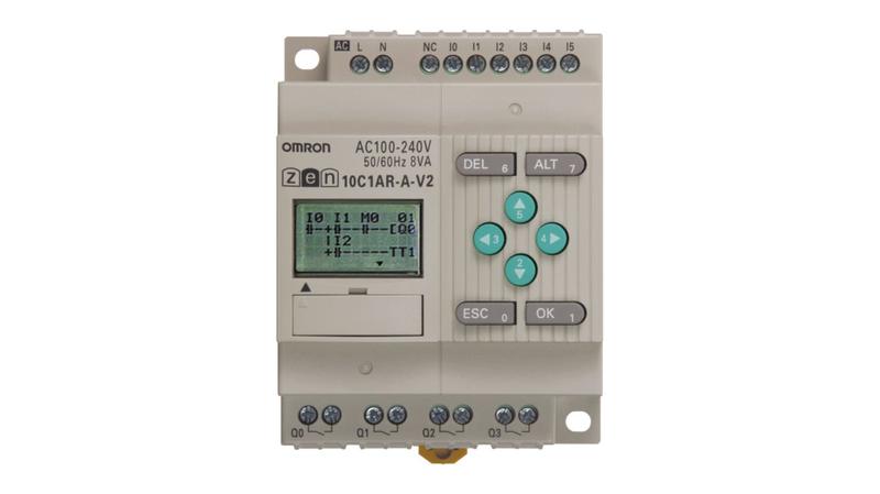 The Omron programmable relay is compatible has 24 VDC supply with LCD - black characters display type. The ZEN logic modules provide relays, timers, counters, and time switches all in one unit. Ladder programming is possible using the built-in LCD display and eight operation buttons._x000D_