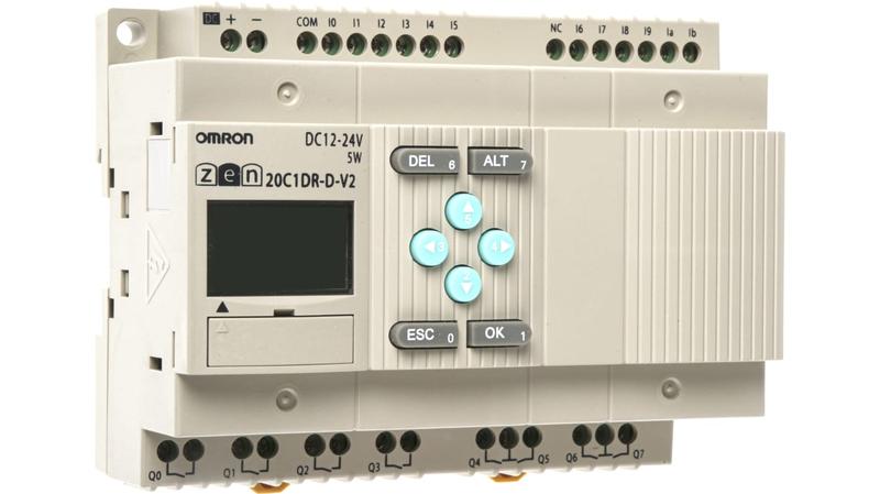 The Omron ZEN series logic module has 12 inputs and 8 relay outputs with a contact rating of 30A. This DIN rail mount logic module has a screw termination method. It has a large memory for applications that require a large space. This logic module has a supply voltage that ranges between 12VDC and 24VDC._x000D_