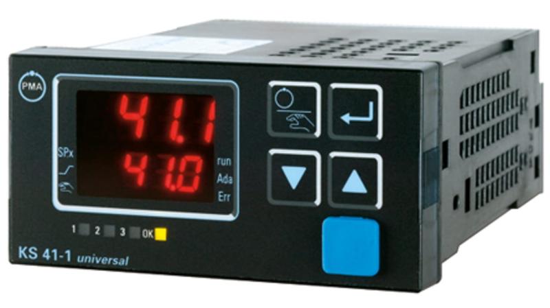 The universal temperature controller KS 41-1 is intended for universal, precise, and cost-effective control tasks in all branches of industry. For this, the unit provides simple 2-point (on/off) control, continuous PID control, or 3-point stepping control. The process value signal is connected via a universal input. A supplementary analog input can be used for heating current measurement or as an external setpoint input._x000D_