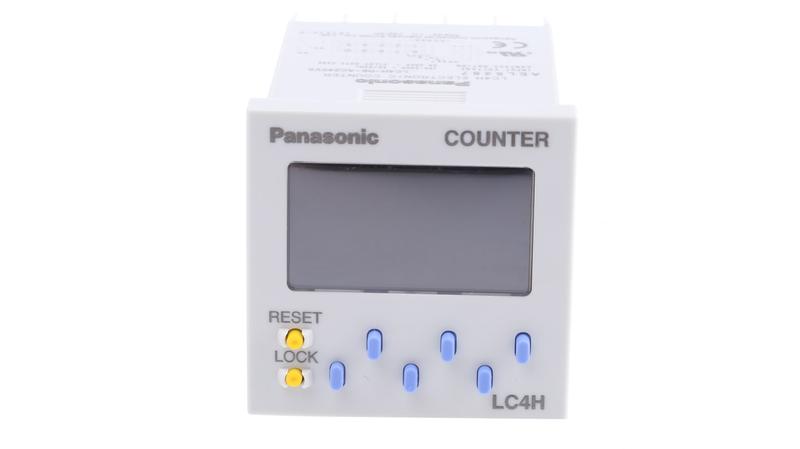 The Panasonic LC4H series digital counter is a 4-digit LCD display, preset electronic device. It has a voltage rating ranges between 12VDC and 24VDC. It supports up, down, command, individual and quadrature operating modes. Operating mode configuration and module setting using DIP switches are on the side of the device. The dual-colour backlit LCD display 2 x 6 digits. This counter has a maximum count frequency of 5KHz._x000D_