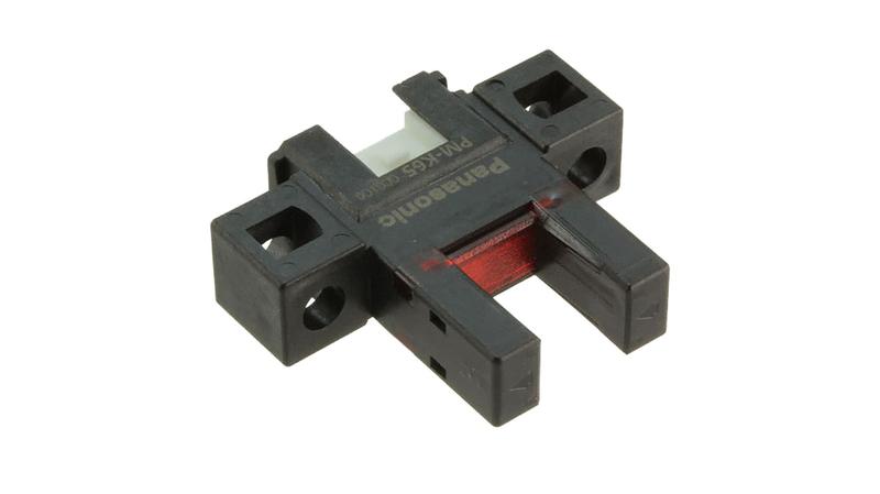 Panasonic PM-65 series compact U-shaped micro photoelectric sensors. The PM series sensors feature a through beam detection type with the emitter and receiver contained within a single U-shaped housing. A large operating indicator lights up to make operation identification easy to see from above and from the sides._x000D_