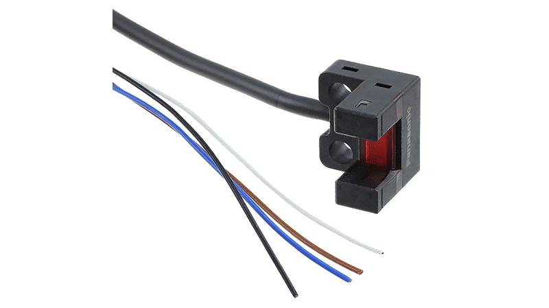 Panasonic PM-25 series ultra-small U-shaped micro photoelectric sensors. The PM series sensors feature a through beam detection type with the emitter and receiver contained within a single U-shaped housing. A large operating indicator lights up to make operation identification easy to see from above and from the sides._x000D_