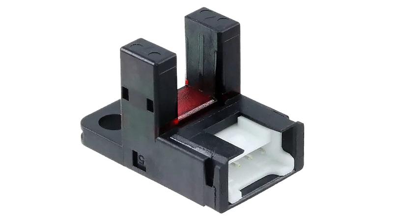 Panasonic PM-65 series compact U-shaped micro photoelectric sensors. The PM series sensors feature a through beam detection type with the emitter and receiver contained within a single U-shaped housing. A large operating indicator lights up to make operation identification easy to see from above and from the sides._x000D_