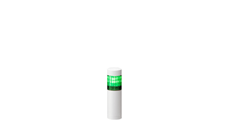 Patlite Single Tower Light_x000D_ The Patlite single tower light is LR LED preconfigured beacon single tower light featuring a modular design. It has a supply voltage of 24VDC. This tower light has a green LED and is base mount. It has a sleek, smooth form factor and enhanced body construction for high performance in harsh environments. It is available in an Off-white body colour._x000D_ Features and Benefits_x000D_ • Direct/cable mount_x000D_ • Modular "twist and lock" system to easily customize and reconfigure LED and sound modules_x000D_ • No flashing/buzzer_x000D_ • Redesigned lens and improved module construction delivering bright, even light for visibility from further distances (2000mcd output)_x000D_ • Reengineered, completely enclosed sound module, maintains substantial water and dust protection while producing loud, omnidirectional sound_x000D_ • Service temperature ranges between -20°C and 50°C_x000D_ • Φ40 size_x000D_ Certifications_x000D_ • CSA-C22.2 No.14_x000D_ • EMC Directive (EN61000-6-4, EN61000-6-2)_x000D_ • FCC Part 15 Subpart B Class A_x000D_ • IP65_x000D_ • KC (KN 61000-6-4, KN 61000-6-2)*3_x000D_ • Low-voltage Directive (IEC /EN60947-5-1, EN62471)_x000D_ • UL 508